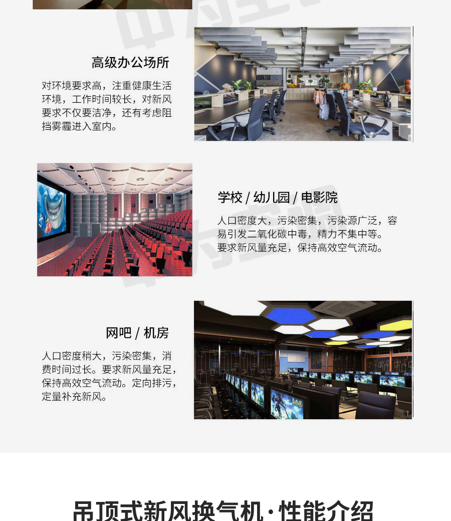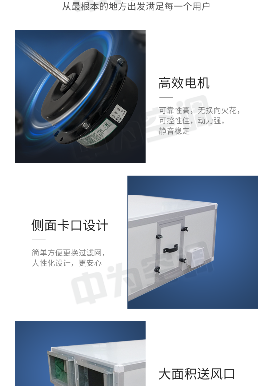中為吊頂式新風(fēng)機(jī)組是提供新鮮空氣的一種空氣調(diào)節(jié)設(shè)備。功能上按使用環(huán)境的要求可以達(dá)到恒溫恒濕或者單純提供新鮮空氣。工作原理是在室外抽取新鮮的空氣經(jīng)過除塵、除濕(或加濕)、降溫(或升溫)等處理后通過風(fēng)機(jī)送到室內(nèi),在進(jìn)入室內(nèi)空間時替換室內(nèi)原有的空氣。當(dāng)然以上所提到的功能得根據(jù)使用環(huán)境的需求來定,功能越齊全造價越高。